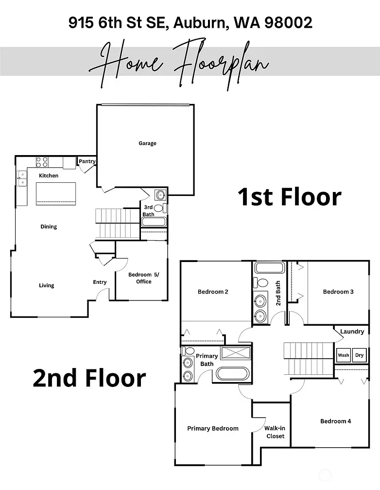 Welcome to this brand-new Craftsman home in Auburn, WA featuring 5 bedrooms and 3 full bathrooms. Enjoy a main-level bedroom or office with a full bath, ideal for guests or working from home. The primary suite offers a spa-like bathroom with heated floors.
